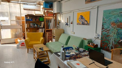 כניסה לסטודיו בתל אביב (ליד רח’ ריב"ל), ב-1 לינואר: קומת קרקע, 30 מ"ר, רצפת עץ בהירה, נקודות חשמל רבות, אור יפה מבחוץ, ארנונה מוקטנת לאמנים פלסטיים, תאורה, מזגן, מקרר, כיור ומטבחון (שרותים נקיים בבניין). תשלום: 1950₪ לחודש, כולל כל המיסים וכולל ביטוח. לפרטים: אורנה אורן יזרעאלי או טל. 052-4485475